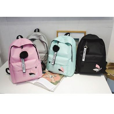 Beg Sekolah Murah Design Casual Cute Canvas Backpack With Fur Ball Accessories Shopee Malaysia