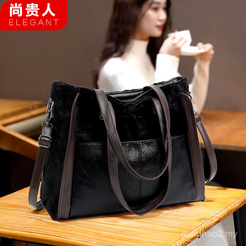 Spot Kapasiti Besar Tote Beg Kulit Tekstur Berbulu Beg Kulit Lembut Beg Besar Wanita Baru Beg Tangan Sebelah Bahu Messenger Bag Shopee Malaysia
